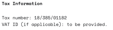 Umsatzsteuer-Identifikationsnummer (falls zutreffend): wird nachgereicht.