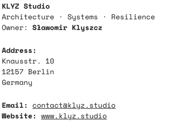 This website contains links to third-party websites. KLYZ Studio has no influence over the content of those external sites and therefore assumes no liability for them. Responsibility for the content of linked pages lies solely with their respective providers.